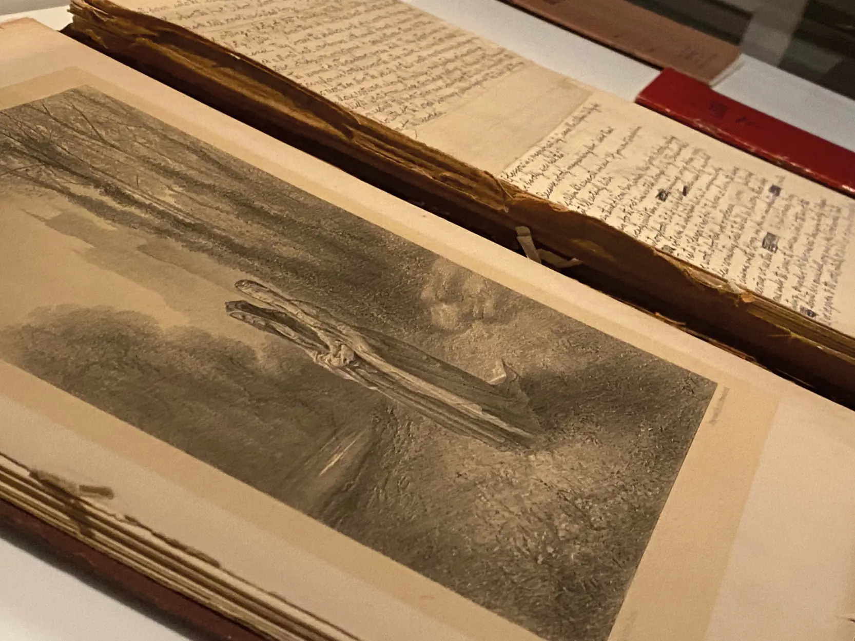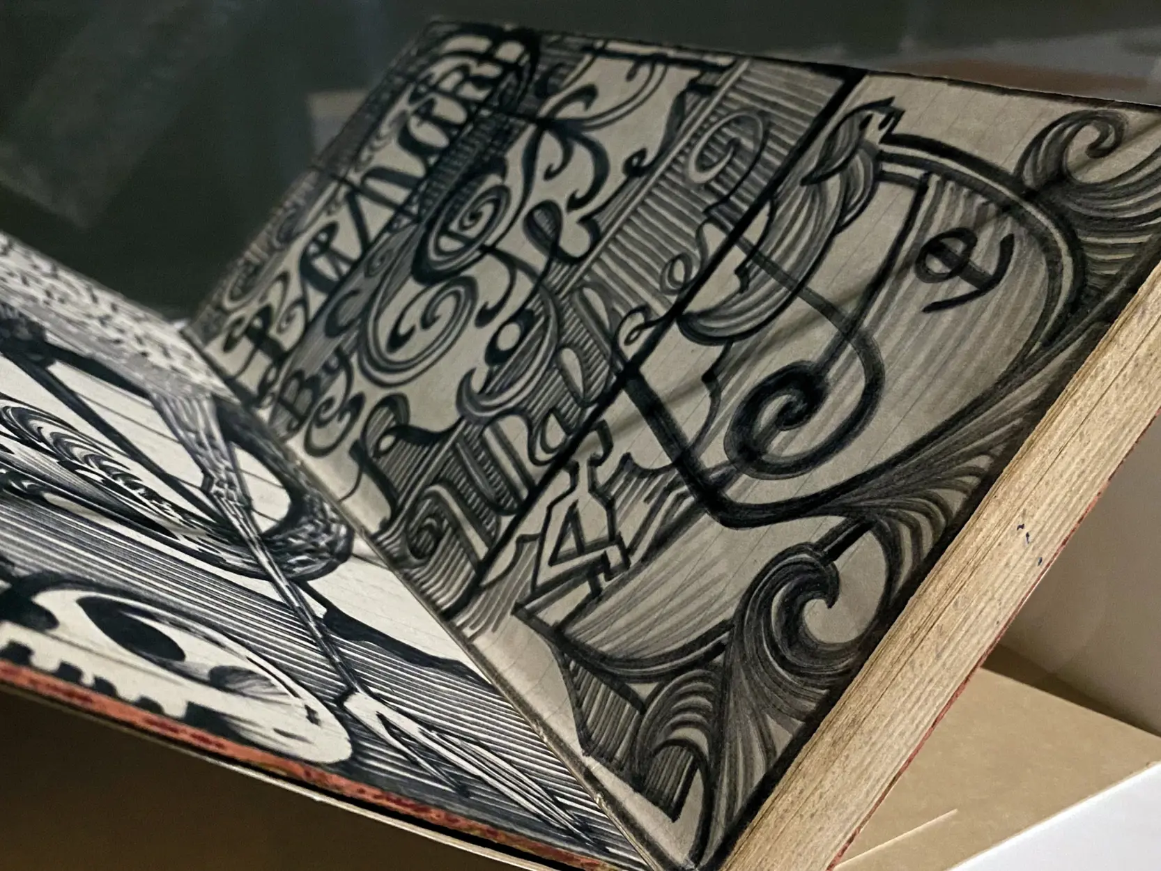The exhibition uncovers how Lanark was made: from conventional art materials to more unusual double-entry accounting ledgers. Pen and ink combine to shape complex images, ready to be interwoven with the words conjured alongside. All of this can be seen across an astonishing variety of found, recycled and repurposed sources of paper on which the manuscript was drafted and re-drafted.